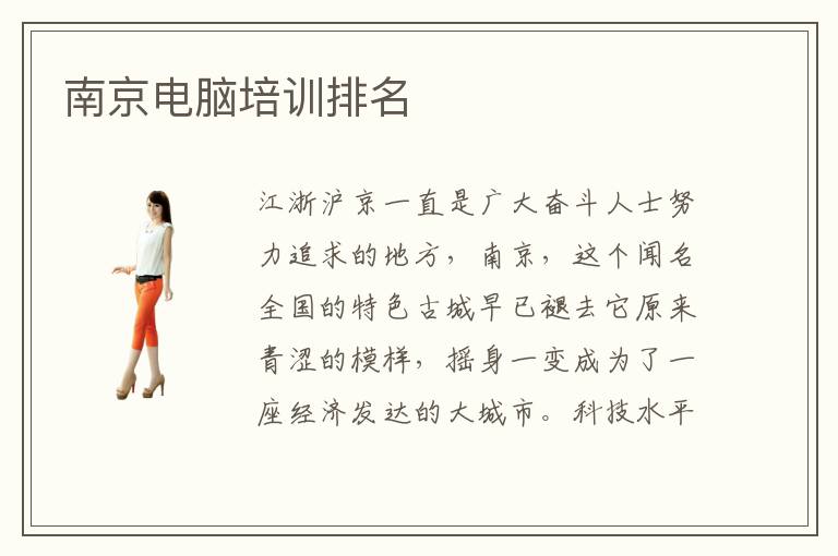 江浙沪京一直是广大奋斗人士努力追求的地方,南京,这个闻名全国的特色古城早已褪去它原来青涩的模样,摇身一变成为了一座经济发达的大城市。科技水平不断发展,南京电脑培训学校也越来越多,为区分市场上鱼龙混杂的培训机构,网友专业综合各电脑培训学校情况对南京电脑培训进行排名评定,南京地区专业的电脑培训机构有哪些?南京计算机电脑培训收费情况是什么?