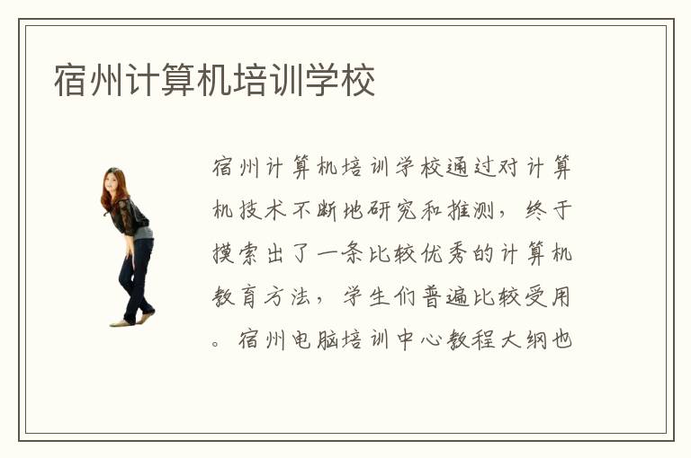 学生们在进入到宿州计算机学校之前,对学习计算机技术只是停留在概念性的层面,并不能真实确切地感受到计算机技术的学习体验。但是,进入到宿州计算机学校后,学习计算机的热情被调动起来,宿州电脑培训中心安排的教学人员很丰富。宿州计算机培训机构学习价值大吗?宿州电脑培训班学习起来还是比较有用处的。进入宿州电脑培训机构学习效果明显。