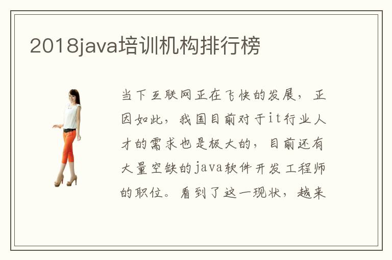 当下互联网正在飞快的发展,正因如此,我国目前对于it行业人才的需求也是极大的,目前还有大量空缺的java软件开发工程师的职位。看到了这一现状,越来越多的人萌生了一种想要学习it专业,进入it行业这样的一个想法。想法很好,但是对于外行人的人来说,选择一个接受教育的培训机构是不容易的,需要谨慎考虑,包括口碑,课程安排以及就业等等问题。2018java培训机构java培训机构排行榜,你知道吗?