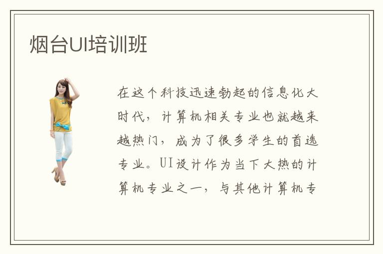 在这个科技迅速勃起的信息化大时代,计算机相关专业也就越来越热门,成为了很多学生的首选专业。UI设计作为当下大热的计算机专业之一,与其他计算机专业有所不同,UI设计师对于女生而言也是一个不错的专业选择。烟台UI培训班通过专业的UI授课团队,打造的都是UI精英人才,每年从烟台UI培训班毕业的优秀学员数不胜数,烟台UI培训班也获得了群众与各大企业的好评。