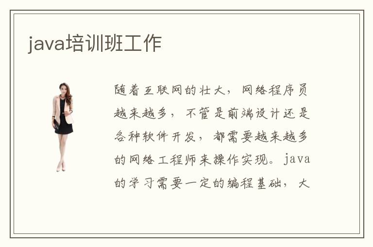 随着互联网的壮大,网络程序员越来越多,不管是前端设计还是各种软件开发,都需要越来越多的网络工程师来操作实现。java的学习需要一定的编程基础,大多数的人只是粗略的学习java,并没有掌握到真正的java技术。还是java培训班工作才能找到好的,一般培训班会培训四个月左右,为学员开设丰富的java课程,全面讲解java知识,一对一专业培训。