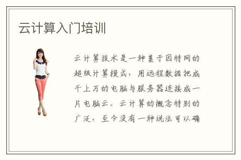 云计算技术是一种基于因特网的超级计算模式,用远程数据把成千上万的电脑与服务器连接成一片电脑云。云计算的概念特别的广泛,至今没有一种说法可以确定到底什么是云计算技术。了解云计算技术的方式有许多,云计算入门培训就是其中的有一种。云计算入门培训是需要学习非常多的专业课的。云计算和虚拟化的关系比较的密切,想要进行云计算入门培训就需要先了解虚拟化课程。首先,操作系统要懂得,其次,需要学习数据库的安装和使用,然后,还要学习存储的基础知识。最后,学习网络的基础知识。这些都属于云计算入门培训的课程,虽然都是一些基础知识,但是,这每一门课程都是必须要去学习的。如今的各个企业工作平台都会使用云计算,所以说想学习云计算技术,就需要先进行云计算入门培训。