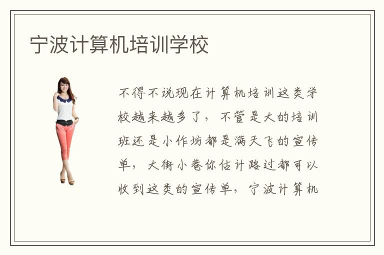 不得不说现在计算机培训这类学校越来越多了,不管是大的培训班还是小作坊都是满天飞的宣传单,大街小巷你估计路过都可以收到这类的宣传单,宁波计算机培训学校当然也是很多的,面对这么多培训机构,真的是不知道哪一个比较靠谱,选择那边计算机培训学校就成了关键,一不小心可能就去了某一个小作坊,有人说这种小作坊开始收费还是合理的,后面半学期的时候突然以什么的名义又让交费,学到一半进退两难啊,心里真的是脏话连篇了,对于零基础的学生有人说培训几个月就可以上岗,我怎么听着不信呢,零基础几个月就可以上岗,那把用人单位放在哪里,人家公司都是睁眼瞎嘛,当然不排除少数能力很强的人,学习方式方法适合自己,学起来容易上手,对于大部分普通人来说还是需要一年多吧,最起码学到的才能应用
