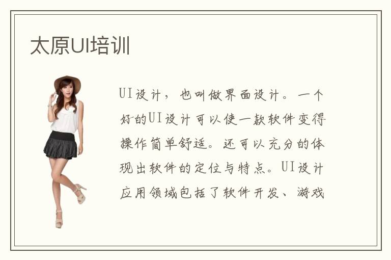 UI设计,也叫做界面设计。一个好的UI设计可以使一款软件变得操作简单舒适。还可以充分的体现出软件的定位与特点。UI设计应用领域包括了软件开发、游戏开发。网页制作等。UI设计在国内还属于一个发展阶段,市场对相关专业人才的需求量非常大,竞争激烈。像淘宝、百度、腾讯等公司都成立专业的UI设计部门,但是相关的专业人才确是稀缺状态。也就是说UI设计目前属于高薪技术设计产业。UI设计工作者年薪一般都可以达到100000—150000,资深的设计师会更多。太原UI培训机构。太原市现在从事UI培训的机构越来越多,到底该怎样选择呢?我们可以从两方面来看:一是收费标准,二是教学质量。太原UI培训机构的收费标准一般都在几千到万元不等。价格过低的培训机构大家就要谨慎选择。教学质量方面,这个就需要同学们自己多多了解。