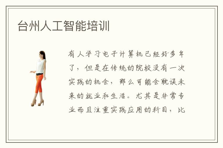有人学习电子计算机已经好多年了,但是在传统的院校没有一次实践的机会,那么可能会耽误未来的就业和生活。尤其是非常专业而且注重实践应用的科目,比如人工智能等等,大家要及时通过先进的设备,将自己的理论知识投入到现实当中,发挥知识的价值和效率。台州人工智能培训效果好不好,大多数人工智能培训学校都能针对不同学生来培养,了解学生的基础,让学生更快适应这些环境,保障人工智能的培训效果。台州人工智能培训哪些效果好,可以选择比较高级的,专业水平高,有规范的操作模式,其实就可以保障教学的成果,能应对各种学生可能存在的问题。台州人工智能培训怎么选择,可以从环境出发,必要时可到当地考察一下,了解环境资源,配套设施,交通环境等等多个方面共同决定。