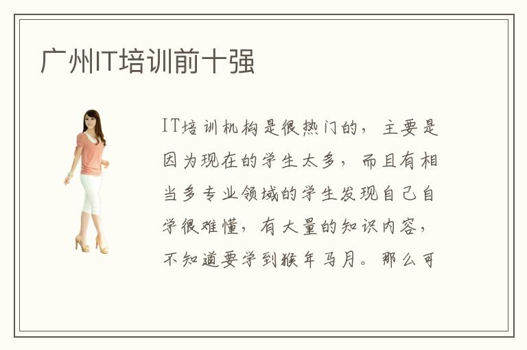 IT培训机构是很热门的,主要是因为现在的学生太多,而且有相当多专业领域的学生发现自己自学很难懂,有大量的知识内容,不知道要学到猴年马月。那么可以考虑广州IT培训前十强,老师的能力更强,专业领域知识更加丰富,可以为学生呈现更多专业领域的干货,让学生可以懂得专业领域的知识内容。广州IT培训前十强有哪些,IT培训班的排名比较靠前,说明这些机构拥有更强的资历,而且口碑也相当优越,给为学生制定更科学的辅导。广州IT培训前十强好不好,当然现在的IT培训机构实在太多,排名榜有好多个,所以并不能够完全相信这些排名。另外如果想要找到优质IT培训机构,那么还是可以到当地的学校了解清楚,看一下基本的配套设施以及大概的环境氛围、老师的教育水准、学生的学习氛围等等。