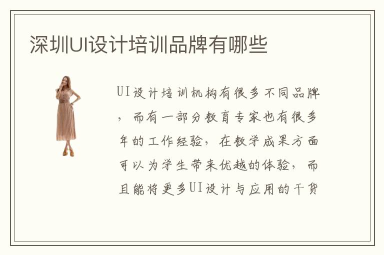 UI设计培训机构有很多不同品牌,而有一部分教育专家也有很多年的工作经验,在教学成果方面可以为学生带来优越的体验,而且能将更多UI设计与应用的干货呈现给学生,学生也可以通过努力的学习得到更好的工作机会。深圳UI设计培训品牌有哪些,一般优质的UI设计培训品牌,在资源配置和管理服务、课程内容等等都是更先进的。深圳UI设计培训品牌有哪些优点,主要在于不同的设计培训公司的专业程度不一样,而且能力管理方面都有很大的差异,因此学生可以针对自身需求和标准来考虑。深圳UI设计培训品牌有哪些值得信赖,如果是品牌质量优越、效果有保障的机构,那么往往管理模式更加新颖,而且课程内容更全面,也一直都可以不断优化教学的服务,创新各种不同的课程,让学生可以了解更多新的课程项目。