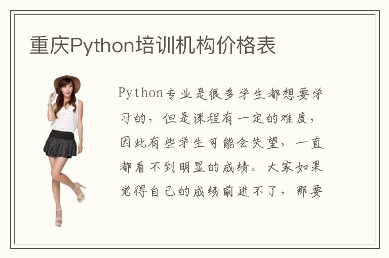 Python专业是很多学生都想要学习的,但是课程有一定的难度,因此有些学生可能会失望,一直都看不到明显的成绩。大家如果觉得自己的成绩前进不了,那要看一下是什么原因,调整学习的方法,也可以参与培训机构的学习,了解一下重庆Python培训机构价格表。Python培训机构挑选方法首先要看Python培训机构能力,如果辅导机构的能力有限、技术含量不高、管理模式也不高兴,甚至也不重视学生的应用成绩,那么这些机构应该很难让学生得到满意的学习成果。另外在挑选Python辅导机构时,也要重视学习氛围以及就业保障,如果Python专业的学习氛围不够浓厚,那么学生学习比较枯燥的课程内容上,可能得不到足够的动力,以后也很难发挥出自己的学习效率,有时候还会出现懈怠情绪等等。