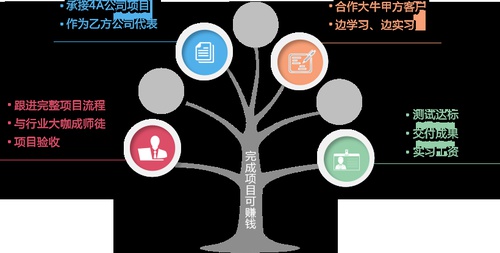 学习期间承接真实企业项目需求,边学习、边实习、边赚钱!