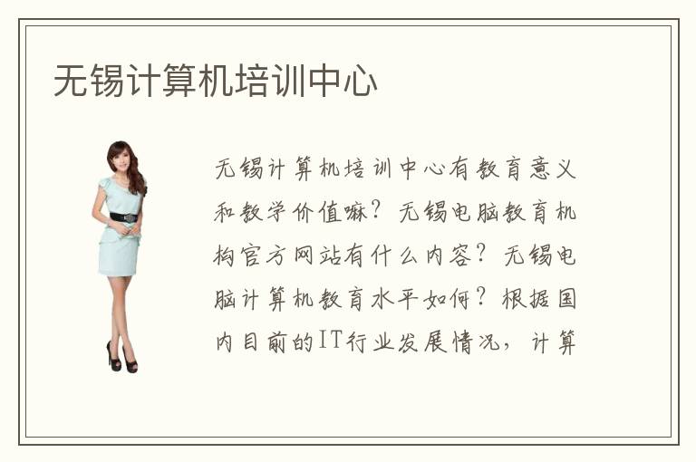 无锡计算机培训计算机培训中心有教育意义和教学价值嘛?无锡电脑教育机构官方网站有什么内容?无锡电脑计算机教育水平如何?根据国内目前的IT行业发展情况,计算机专家推测,IT事业还会继续膨胀,计算机产业链也会继续延长,电脑专业也将持续升温。作为青年一代的我们,可以发现计算机作为发展前景极好的专业,是比较抢手的,选择去学习IT技术,发扬自己的逻辑思维。