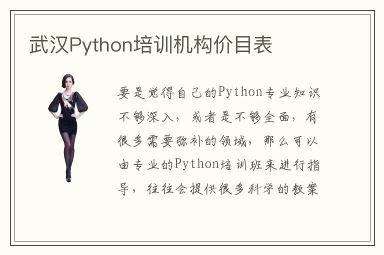 要是觉得自己的Python专业知识不够深入,或者是不够全面,有很多需要弥补的领域,那么可以由专业的Python培训班来进行指导,往往会提供很多科学的教案,让学生可以尽快弥补,得到更全面的Python专业知识内容。武汉Python培训机构价目表可能是在2500到16,000元,因为有很多课程内容,因此Python培训机构学习难度也是存在差别的,学生在考虑这些Python培训机构之前,要对比清楚各种学习的课程优势以及学习难度,然后再进一步提高Python专业的技术优势。Python培训机构有没有高端学习,有些Python培训机构的课程内容还是比较多的,不仅有技术性的方案,还有高端的学习方案等等。学生可以在这些专业的机构当中找到适合自己的学习方法,提高Python专业就业的优势,改善自身的能力。