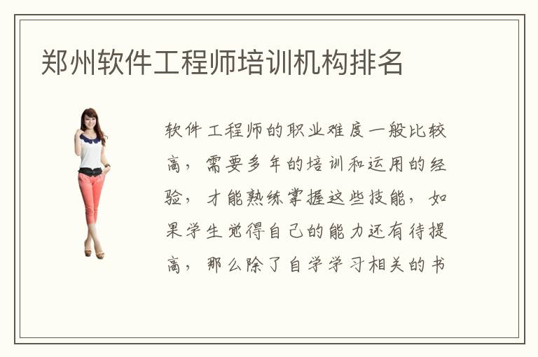 软件工程师的职业难度一般比较高,需要多年的培训和运用的经验,才能熟练掌握这些技能,如果学生觉得自己的能力还有待提高,那么除了自学学习相关的书本知识之外,还可以考虑软件工程师的培训课程。这些课程往往会更加注重学生的软件工程专业应用实践能力,改善学生的学习压力以及动力。郑州软件工程师培训机构排名不一样,往往会有不同的技术能力,也会提供不同的软件工程师培训课程方案。有些课程内容是非常先进的,也是当下十分高端的技术,能够结合国际的技术,因此学生掌握这些内容之后,就不会担心找不着工作的问题。软件工程师培训机构气氛也是非常多学生考虑的重点,如果学习的难度大,也没有很好的学习氛围,那么学生可能就会很容易出现厌学的心理状态。但是老师会根据不同学员的学习状态来选择课程,因此可以调动学生的主动学习的动力。