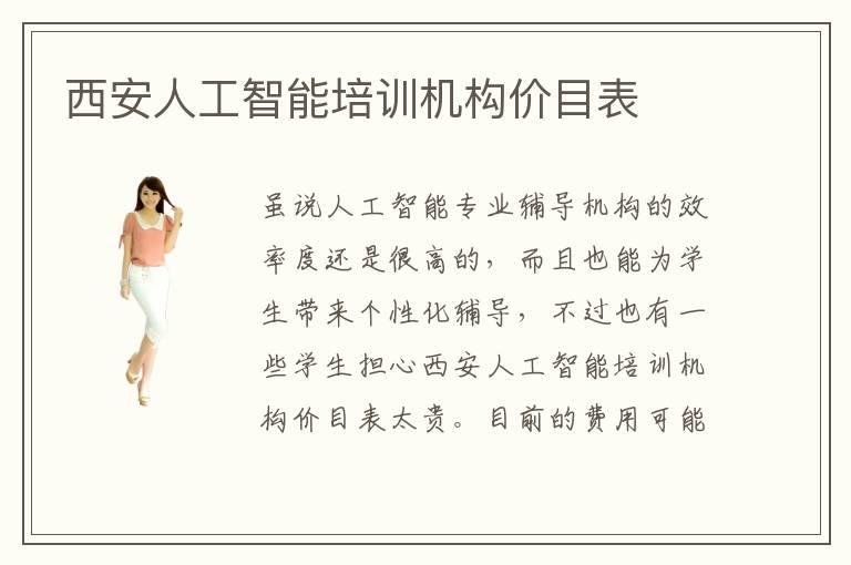 虽说人工智能专业辅导机构的效率度还是很高的,而且也能为学生带来个性化辅导,不过也有一些学生担心西安人工智能培训人工智能培训机构价目表太贵。目前的费用可能是在2400到8000元,总体来说不是很贵,大多数人都是可以负担得起的。人工智能培训课程会很快吗,当然也会有比较快速的课程培训,让学生更了解这些人工智能的专业应用。人工智能培训机构师资力量是重要的参考指标,有些学生在人工智能专业学习的时候,总是发现自学特别困难,一直想找到水平比较高的老师。那么可以先参考一下各种人工智能培训机构的专业师资力量,了解老师的学历、资历和专业、经验等等。如果老师的知识和经验更多,在培训学生的时候,往往可以制定更加符合学生发展的课程类型,而且也可以通过个性化的教学方案,让学生尽快适应人工智能专业学习的方法。