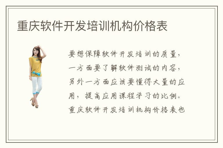 要想保障软件开发培训的质量,一方面要了解软件测试的内容,另外一方面应该要懂得大量的应用,提高应用课程学习的比例。重庆软件开发培训机构价格表也许在3500到9500,但是因为课程方案以及方法不同,所以价格会存在很大的波动。软件开发培训机构怎么样,目前的软件培训机构比较正规,关注软件开发培训学习成绩,就是希望让更多学生了解自己的软件开发应用局限,然后再针对性进行弥补,透过多种浸入式实践演练和训练等等的方式,让学生对这些软件开发专业领域有更加全面的把握。有些软件开发辅导机构的专业培训能力不是很强,学生要懂得去区分,尽可能找到综合实力更强、排名靠前、就业质量有保障的机构,这样在以后的学习辅导过程中,也许会有更加明确的软件开发专业学习目标和任务。
