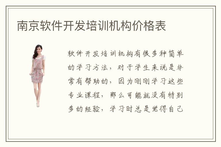 软件开发培训机构有很多种简单的学习方法,对于学生来说是非常有帮助的,因为刚刚学习这些专业课程,那么可能就没有特别多的经验,学习时总是觉得自己的进度太慢。但是透过软件开发培训机构往往就可以改善这样的问题,让学生得到更快的学习效率。而且也会有全面的教育辅导方法,学生可以进一步凸显出应有的优势和成绩。南京软件开发培训机构价格表大概范围是3000元到7000元之间,主要看软件开发培训机构特色,以及不同机构的能力。软件开发培训机构值得信任吗,如果学生的应用价值明显,专业的效果突出,每一年都会为社会输送大量的软件开发专业人才,那么这些机构应该是更加值得学生来选择。但如果这些软件开发培训机构的能力有限,专业的效果不突出,那么软件开发能力就会受干扰。