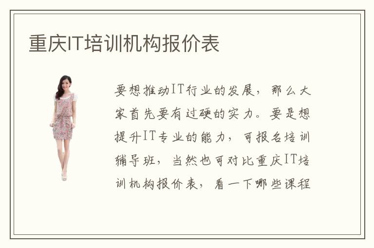 要想推动IT行业的发展,那么大家首先要有过硬的实力。要是想提升IT专业的能力,可报名培训辅导班,当然也可对比重庆IT培训机构报价表,看一下哪些课程的价格指标和定位更加符合自己的要求。许多计算机学员会担心IT培训机构任务量太大,而且IT培训机构培养内容也比较难,自己可能以后掌握起来会相当困难,给自己带来压力,因此不太敢学习IT辅导班的课程。事实上IT专业辅导班会提供各种不同难度和阶段的课程学习任务,学生在掌握这些知识点的过程中,如果有明显的进步,老师会适当增加任务量和难度。但如果学生在某个领域一直都没有办法突破,老师会根据学生学习进度来确定,适当降低任务量,能延长学习的时间,让学生可以对重要知识点和难点有充分的了解和学习。