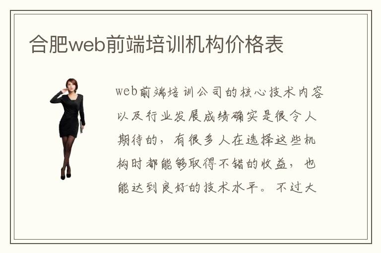 web前端培训公司的核心技术内容以及行业发展成绩确实是很令人期待的,有很多人在选择这些机构时都能够取得不错的收益,也能达到良好的技术水平。不过大家在选择这些web前端机构,应该要重点多了解web前端开发培训的项目相关内容,合肥web前端培训机构价格表可能4000元到12,000元不等,但是因为web前端培训机构成果不一样,因此课程的收费标准会有波动。web前端培训机构水准大多数都很高,只不过有些培训机构的管理水平、教学经验、技术优势等等都不同,因此并不能够保障所有的web培训公司都有很高的技术。但是大家要从几个角度去选择,包括技术能力、学生的成果、老师的水平等等,这些都是很重要的参考指标,需要大家去选择之前了解,这样在web前端学习时也是会有帮助。