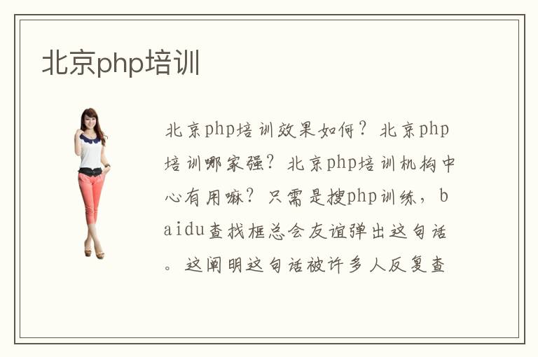 北京php培训效果如何?北京php培训哪家强?北京php培训机构中心有用嘛?只需是搜php训练,baidu查找框总会友谊弹出这句话。这阐明这句话被许多人反复查找,这也阐明跟着互联网的飞速开展,有许多零基础新我们想经过训练走上PHP开发的路途,拥抱这个宏大的互联网年代。可是面临PHP零基础新我们,我想告诉我们一个严酷的实践:如今PHP训练商场鱼龙稠浊,教学质量好的训练组织并不多,有许多的训练组织受利益引导,爲招生不择手腕。顾虑重重海量投入广告,乃至可以不顾现实,选用虚伪许愿,夸大鼓吹。不置信,你可以到PHP有关的贴吧和论坛去看看,我们对PHP训练职业是怎样一个评价;不置信,你可以问问那些巨量的情愿在家静心苦学的自学者,有多少人由于差错挑选训练组织,花了许多钱,许多时辰,却只在坑里挣扎。所以规劝新我们在挑选PHP训练校园的时分,一定要慎之又慎,千万不要由于自个的匆忙和随意,而让自个留下一段悔恨的阅历。你失掉的,不只是爸爸妈妈大笔的血汗钱(有些乡村孩子,膏火曾经是他们一笔不小积储)和自个几个月名贵韶光,更也许是消磨求知的热情和不坚决训练是可以改动命运的信仰,让自个又走回到人生的老路上,这是多麼可怕。只要挑选一家好的PHP训练组织,我们经过训练改动命运才有也许完成。但令人痛心的是,面临如此稠浊的训练商场,想学习的却更多是啥也不太懂的新人,假设只是痴心于经过baidu输出北京php培训组织哪个好,就真的能找到好的PHP训练组织,这几乎即是梦想!爲何这麼说?北京php培训好不好,北京php培训究竟哪家强,北京php培训机构中心真的会有用嘛