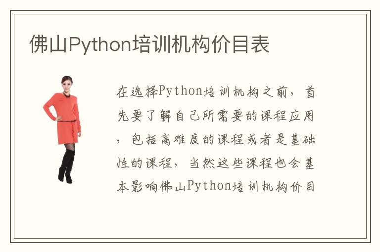 在选择Python培训机构之前,首先要了解自己所需要的课程应用,包括高难度的课程或者是基础性的课程,当然这些课程也会基本影响佛山Python培训机构价目表,有些技术性的课程可能只需5000就可以完成,而且学习Python专业的时间也可以缩短。Python培训机构学习成果一般值得大家期待,有大量的学习课程方案,让学生可以结合自己能力、专业需要、当下的时代发展等等角度来学习,因此收获全面的指导和应用优势。Python培训选择技巧主要看技术水平、教育方法以及培训质量等等,如果Python培训机构每年都能够培养出大量优秀的学生,也能赢得市场口碑,那这些Python辅导机构应该是更加值得学生去考虑。但有些机构可能教学质量一般,成绩不太明显,那么Python培训的质量可能就不太好。