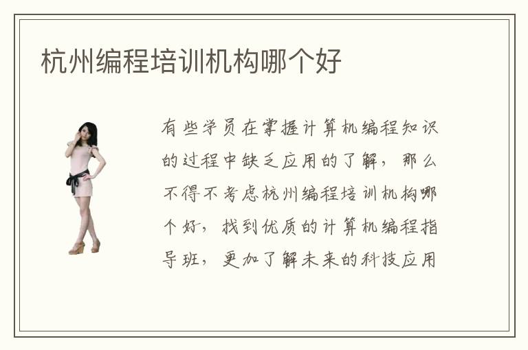 有些学员在掌握计算机编程知识的过程中缺乏应用的了解,那么不得不考虑杭州编程培训机构哪个好,找到优质的计算机编程指导班,更加了解未来的科技应用,提高计算机编程的竞争优势。编程培训机构师资力量以及编程培训机构技术都是很重要的参考指标,计算机编程培训的学生如果觉得自己的能力一直都突破不了,而且学习一直都处于现在的状态,没有办法调动自己的积极性和动力,那么可以由专业的计算机编程辅导老师提供大量优质的先进技术,让学生有更强的动力去掌握这些重要知识内容,也能把握尖端的科技。当然学生自己在面对高难度的知识过程中,也应该要有足够的时间去思考和研究,因为老师只能确定学习的方向和提供学习技巧,要想熟练掌握这些应用,还是需要自己去努力。