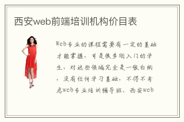 Web专业的课程需要有一定的基础才能掌握,可是很多刚入门的学生,对这些领域完全是一张白纸,没有任何学习基础,不得不考虑web专业培训辅导班。西安web前端培训机构价目表也许在4000到15,000元,但是内容不同,难度不一样,所以报名费会不同。web前端培训课程多不多,大多数培训辅导班都会提供基础性的课程或是就业辅导课程、业余兴趣课程等等。web前端培训难不难,Web专业培训知识的学习难度还是比较适中,很多学生虽然对这些专业比较陌生,但是有很多辅导老师可以提供非常简单的培训方式,让学生适应这些不同难度的课程,更快掌握到web前端的应用以及专业技能的学习。虽然说学生可能刚开始接触专业,学习能力不是很强,而且有时候学习进度很难达到自己预设的标准,但是通过不断努力学习这些课程内容,那么学习的速度就会有明显加快。