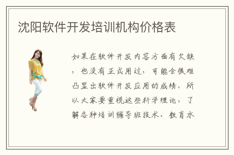 如果在软件开发内容方面有欠缺,也没有正式用过,可能会很难凸显出软件开发应用的成绩。所以大家要重视这些科学理论,了解各种培训辅导班技术、教育水平以及学习成绩等等。沈阳软件开发培训机构价格表也许会是在4300~8000元,但是因为课程辅导方案不同,所以报名学费会变化。软件开发培训有趣吗,其实目前软件开发辅导班还是有大量有趣的课程内容,也能调动软件开发培训学习动力。学生如果在软件开发培训方面这种动力,那么辅导机构都会特别重视,也会想方设法让学生更加轻松去掌握这些内容。当然在学习软件测试开发方案之前,大家要了解各项培训任务、发展的方向以及教学指标,要是学习的能力不够强,要听从老师的安排,跟上老师的节奏,花足够多的时间来参与软件开发的培训,以后就可以得到更加充分的应用。