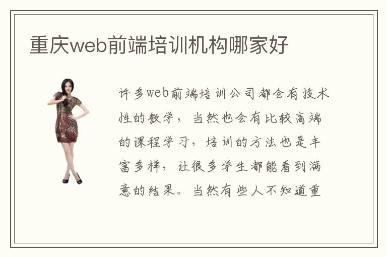 许多web前端培训公司都会有技术性的教学,当然也会有比较高端的课程学习,培训的方法也是丰富多样,让很多学生都能看到满意的结果。当然有些人不知道重庆web前端培训机构哪家好,一直在找培训机构的时候会比较茫然一点。web前端培训小组课程有高效的学习效果,也可制定比较全面的学习内容,通过小组教学的方式,让学生能了解各种web前端的应用知识,效率会更高。学生也是在选择这些机构之前,并没有特别多参考的因素,那么可能就会找到劣质的辅导机构,所以要掌握web前端培训机构选择方式。比如要多多参考技术能力及教学理念、老师的水准、操作辅导课程等等。有些学校只有理论的研究和学习,并没高端的课程辅导应用,那么以后在学习这些专业领域的过程中,也许就不能够发挥出理想的成果,都没有一点应用成绩。