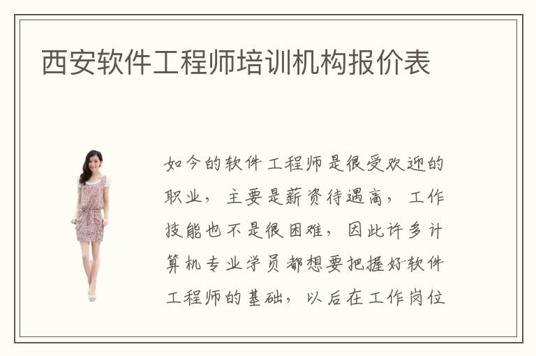 如今的软件工程师是很受欢迎的职业,主要是薪资待遇高,工作技能也不是很困难,因此许多计算机专业学员都想要把握好软件工程师的基础,以后在工作岗位上就可以将这些基础充分体现。西安软件工程师培训机构报价表要取决于软件工程师培训技术含量,比如技术含量比较高的辅导机构,报名学费会上涨,有时候要4000~5000元起步。有部分软件专业的学生在学习软件工程相关内容时,都希望可以提高应用的优势,以后再找工作过程中就可以得到更好的成果。那么大家要重视软件工程师培训就业课程,了解这种课程内容和培训方法,多关心一些能体现出自己应有水准的课程。另外自己也要多多去实践,而不是只有老师的课程而已,要多关注各种重要的实践课程,这样在以后的学习就不会有太多障碍。