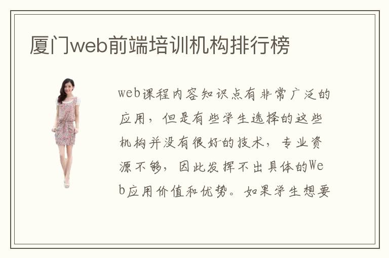 web课程内容知识点有非常广泛的应用,但是有些学生选择的这些机构并没有很好的技术,专业资源不够,因此发挥不出具体的Web应用价值和优势。如果学生想要凸显出Web专业应用的成果,那么可以先对比厦门web前端培训机构排行榜,了解各种不同的web前端培训机构资源,选择优质的辅导班,提高技术价值和优势。web前端培训线上培训好不好,很多学员平时并没有太多时间,因此想要通过线上培训的方法,让自己的Web专业技能始终保持领先的状态。,那么可以考虑网络培训班,通常可以节省上下学的时间,通过网络上也可以随时随地去学习更多高端知识,另外如果学生有更多不懂的问题,那可以及时通过网络的方法和途径咨询老师,老师也可以更快将学生的问题解决掉。