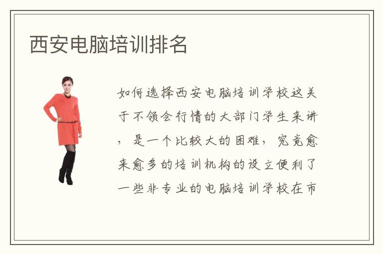 如何选择西安电脑培训学校这关于不领会行情的大部门学生来讲,是一个比较大的困难,究竟愈来愈多的培训机构的设立便利了一些非专业的电脑培训学校在市场上泥沙俱下。有一个绝对来讲比较迷信的根据可以参考,那便是西安电脑培训排名表。这是一份综关评价西安各个电脑培训学校的专业性报表。那末,西安电脑培训学习费用怎么去计算学费要多少钱西安电脑培训排名推荐电脑学校