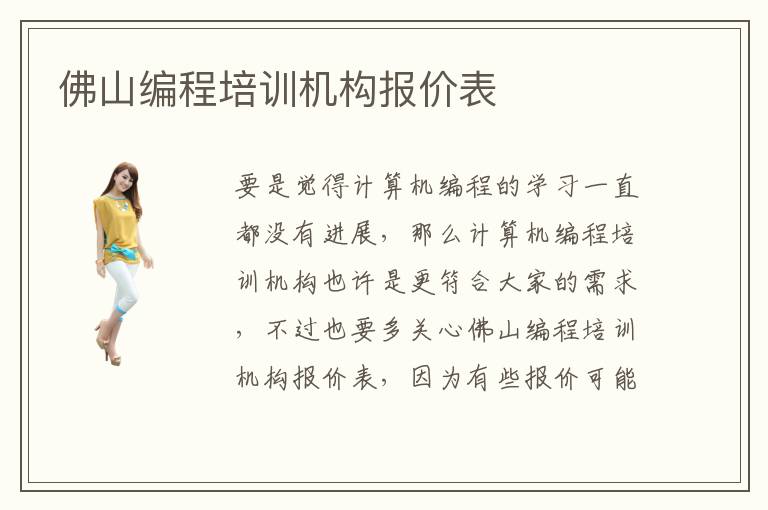 要是觉得计算机编程的学习一直都没有进展,那么计算机编程培训编程培训机构也许是更符合大家的需求,不过也要多关心佛山编程培训机构报价表,因为有些报价可能会贵一点点,那对于没有经济来源的学生来说可能就会有比较大的经济压力。有相当大一部分计算机编程机构都能带来很全面的辅导学习,改善身应用成绩很多学生在选择这些辅导班的时候,都比较担心编程培训机构专业技能不够高,编程培训机构质量,也没有办法提供保障,因此以后的计算机编程学习可能就提这么做的效果。不过只要能够找到正规的计算机编程辅导公司,有很全面的知识内容培训,那么一般都不用害怕学习效果不全面的情况。另外不管选择哪些辅导班,大家要重点了解系统培训的内容,从简单的内容逐渐深入到更加高端的设计,达到更好的学习水准。