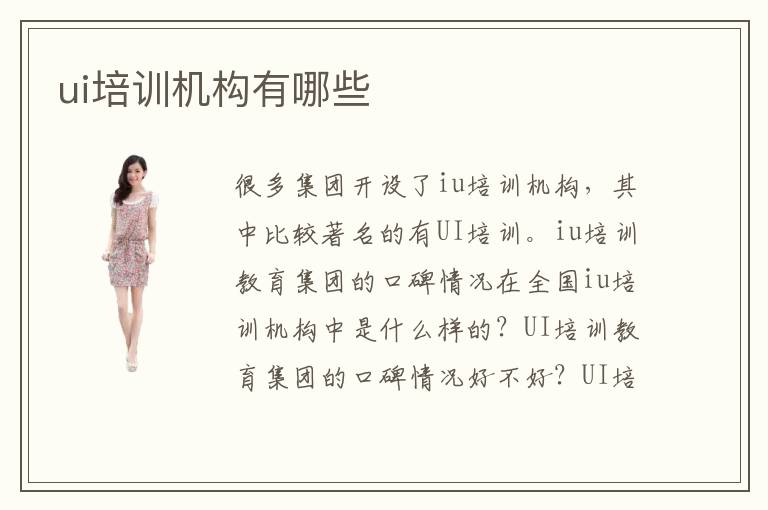 很多集团开设了iu培训机构,其中比较著名的有UI培训教育集团。iu培训教育集团的口碑情况在全国iu培训机构中是什么样的?UI培训教育集团的口碑情况好不好?UI培训教育集团有很多教育经验丰富的教师,擅长让学生发散性思维、开发学生的创造力想象力,让学生能够有足够的优势去面对激烈的市场竞争力。UI培训教育集团教学质量如何?