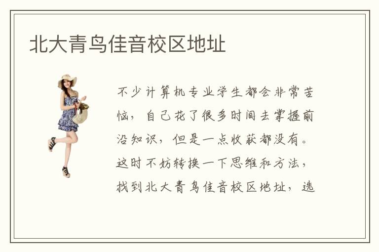 不少计算机专业学生都会非常苦恼,自己花了很多时间去掌握前沿知识,但是一点收获都没有。这时不妨转换一下思维和方法,找到北大青鸟佳音校区地址,选择优质的课程教学方案,让自己的知识结构变得更加完善。北大青鸟佳音校区水平是非常优越的,可能有些学生才刚开始接触课程,所以学习能力不是很强,但是有北大青鸟专业老师的指导,往往就不用担心进步速度很慢的情况。北大青鸟口碑如何,北大青鸟教育机构的口碑一直都是相当优越的,大量学员慕名而来,报名北大青鸟的培训课程,期待有更广阔的发展舞台,竞争能力变得更强。其实之所以有如此让人期待的优势,就是因为北大青鸟一直都严格设计培训的课程,要求老师有超高水平,在工作岗位上有足够强的能力,也有丰富的教学经验。