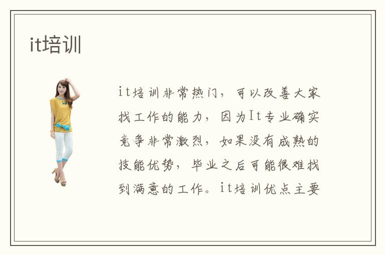 it培训非常热门,可以改善大家找工作的能力,因为It专业确实竞争非常激烈,如果没有成熟的技能优势,毕业之后可能很难找到满意的工作。it培训优点主要是专业老师有严谨的教学思维,每一位老师都是经过层层选拔,积累很多年的辅导经验,关注学生在It专业补习过程的成长动态,能够为学生带来更多优势和好处。it培训快不快,It培训机构的速度应该是很快的,因为老师会提供多方位的教学方案,包括现场展示以及在线辅导、音频同步等等,大家可以随时结合自己的学习状态以及兴趣进行选择。当然学生要想在It行业拥有比较明显的进步,应该要把握当下的科技,毕竟科技发展速度越来越快,如果学生总是停留在当下,不知道未来的发展趋势,不与时俱进,确实很难拥有长远的进步。