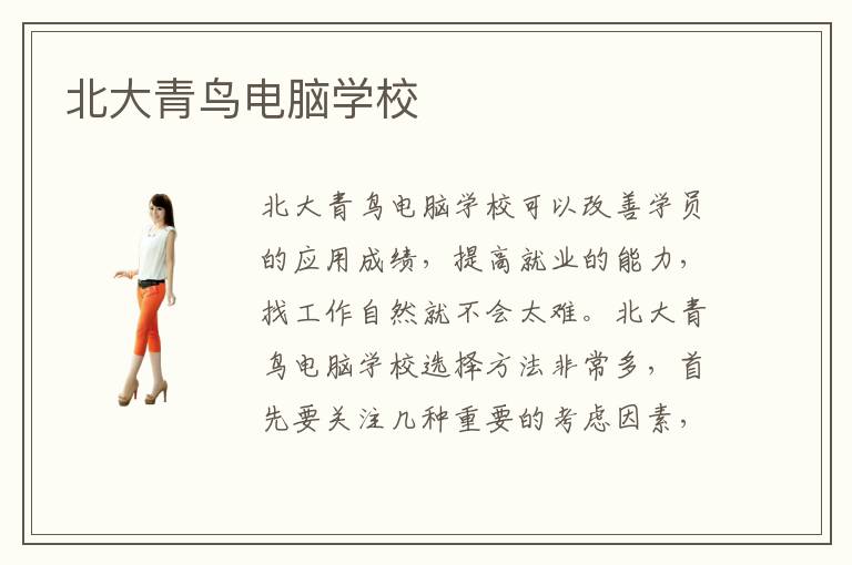 北大青鸟电脑学校可以改善学员的应用成绩,提高就业的能力,找工作自然就不会太难。北大青鸟电脑学校选择方法非常多,首先要关注几种重要的考虑因素,包括辅导能力、教学口碑、师资力量等等。假如师资力量不够雄厚,口碑也很普通,教学能力会受到明显影响,学生收获自然会更少。北大青鸟电脑学校收费吗,北大青鸟电脑培训电脑培训机构需要收费,但费用范围不会很贵,可能准备1000元到6000元即可报名参与。事实上许多学员都觉得自己的It专业知识理解得不够深入,应用能力不强,因此工作方面发挥不出优势,容易被他人淘汰。但北大青鸟电脑补习机构的老师有多年经验,关注学生的成长,了解学生的缺陷以及学习目标,提供优质的辅导课程,让学生的进步效果得到更多改善。