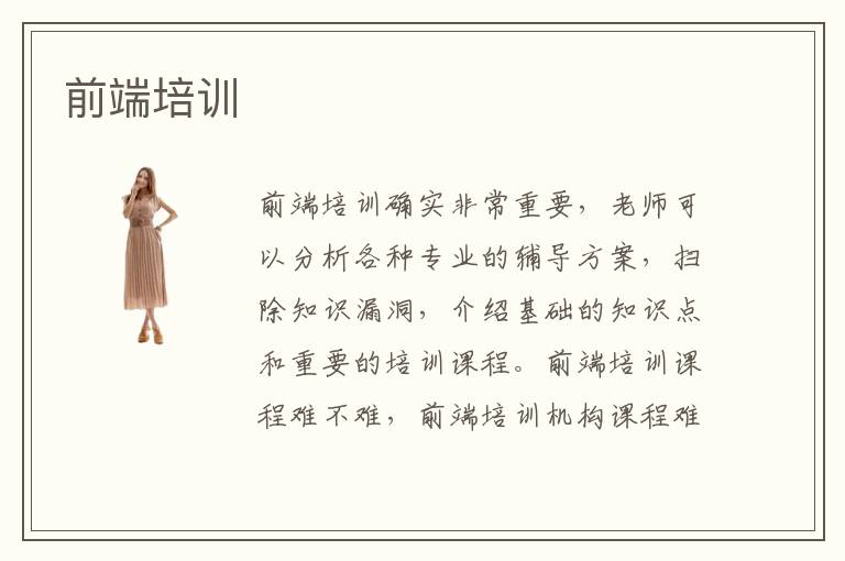 前端培训确实非常重要,老师可以分析各种专业的辅导方案,扫除知识漏洞,介绍基础的知识点和重要的培训课程。前端培训课程难不难,前端培训机构课程难度较小,老师提高细致辅导,采用个性化教学,使得大家在前端设计应用的时候,看到自己的进步有显著的变化。前端培训机构能力如何,前端培训班的专业实力很强,老师也会布置很多重要的课程,营造很活跃的学习氛围,让大家可以积极主动参与到培训班的课程当中,共同之间有更多探讨和解题的训练,真正锻炼大家的学习和应用思维。其实在前端培训班机构的帮助下,许多学生都有不错进步,但如果没有良好的思考能力,不积极主动去挖掘难点,脱离前端培训班的帮助后,可能就会重新回到原点,所以要养成爱学习和爱思考的好习惯。