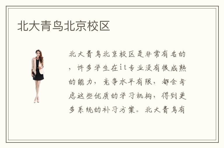 北大青鸟北京校区是非常有名的,许多学生在it专业没有很成熟的能力,竞争水平有限,都会考虑这些优质的学习机构,得到更多系统的补习方案。北大青鸟有必要吗,北大青鸟课程很重要,也是大家的重要进步途径,所以学生要是认为自学能力有限,其实学习方向模糊,没有明确指导思想,都可以参与北大青岛的专业补习课程。北大青鸟课程轻松吗,北大青鸟的课程是很轻松的,因为老师会关注学生的进展和动态,挖掘学生的潜力以及未知的领域。在每一堂课程之前,都会丰富学生及时进行预习,找到学习方向,然后在补习过程中,会通过丰富多样的教学方案,包括上台演讲以及案例分析、实践课程等等,让大家感受到学习的趣味,调动学生的积极性,从而得到很好的学习收获。