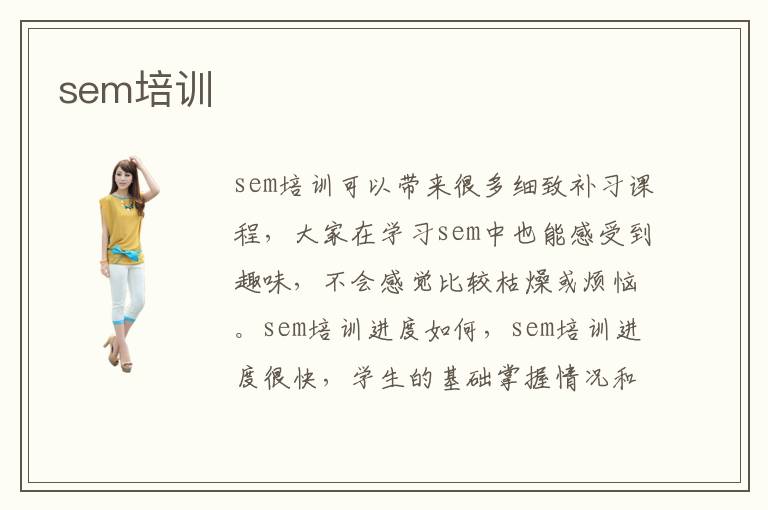 sem培训可以带来很多细致补习课程,大家在学习sem中也能感受到趣味,不会感觉比较枯燥或烦恼。sem培训进度如何,sem培训进度很快,学生的基础掌握情况和学习状态不同,速度都会有一点点差异,老师会在培训之前,了解这些基本的状况,然后再调整好学习进度,使学生接受能力更强,补习吸收效果更好。sem远程辅导相当重要,部分学生总是停留在眼前,没有很好的学习方法,成绩也不太过关,报名专业补习班后,会得到很多优质的辅导,制定系统的教学培训内容,让大家可以深入理解知识点,挖掘知识漏洞,展示不错的学习成绩。其实学生在sem学习的过程中,可能会发现一些难突破的知识领域,学生应该细心掌握各种学习的技巧和方法,调整好学习的状态,快速提高学习的效率。