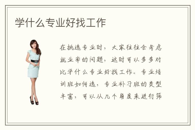 在挑选专业时,大家往往会考虑就业率的问题,这时可以多多对比学什么专业好找工作。专业培训班如何选,专业补习班的类型丰富,可以从几个角度来进行筛选,包括学习方式、教学内容以及专业实力、培训口碑等等。专业补习机构有作用吗,其实不管选择哪些补习机构,都会有一些明显的作用,首先就是布置个性化补习课程,利用趣味性的授课方案,使大家对这些专业课程更感兴趣,充分调动起自己的积极性,学习会变得很轻松,不会感觉很枯燥或者乏味。在学习的时候,总是有难题或者是学习的障碍,遇到不好的环境,产生特别多负面的情绪,甚至上课开小差,出现懈怠的心理状态,都会影响学习成果。而专业老师可以提供细致教学方法,扫除各种专业学习的难题,使得学生有更多突破。