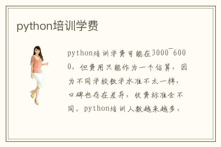 python培训学费可能在3000~6000,但费用只能作为一个估算,因为不同学校教学水准不太一样,口碑也存在差异,收费标准会不同。python培训人数越来越多,毕竟python专业课程难度有点大,每年都有许多新的知识内容,如果没有老师作为指导,仅凭自己在家里学习,很难拥有进步,而且容易被时代淘汰。python培训机构优点主要是课程非常全面,有非常多技术类的应用课程,使大家的学习效果好很多。毕竟如今的学习方案多种多样,技术发展速度很快,导致许多学生学习能力有限,总是跟不上专业的发展。学生要是得到老师的严格教学和辅导,进步速度往往就可以快速上升,整个学习过程中都感觉到非常轻松,体验到python专业学习的快乐,同时对这些技术学习也更感兴趣。