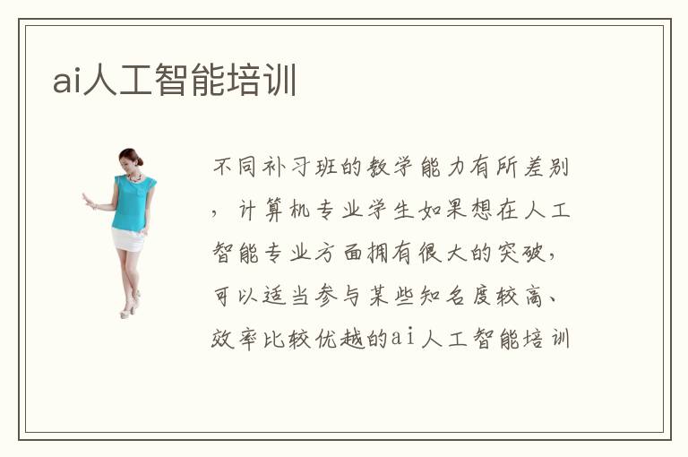 不同补习班的教学能力有所差别,计算机专业学生如果想在人工智能专业方面拥有很大的突破,可以适当参与某些知名度较高、效率比较优越的ai人工智能培训课程。ai人工智能培训容不容易,AI人工智能培训机构课程相对容易,很多学生都能找到适合自己的解题的方法,掌握许多解题思路,从而改善个人的应用水准。ai人工智能培训成绩非常优秀,老师会满足不同基础学生的需要,提供多方位的辅导方案。要是学生觉得老师的水平不高,或者是成绩不够理想,都可以适当更换老师,选择另外的补习机构,相信都有很好的效果。另外,在补习的时候,学生不要去依赖于专业培训班或者是老师,应该要有自己的思考,每个阶段都要归纳总结,及时分析,梳理知识结构,在学习过程中更有条理。