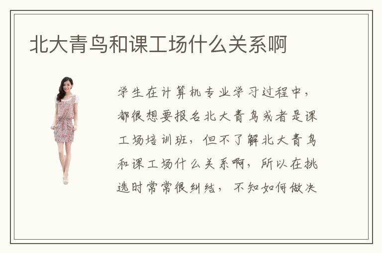 学生在计算机专业学习过程中,都很想要报名北大青鸟或者是课工场培训班,但不了解北大青鸟和课工场什么关系啊,所以在挑选时常常很纠结,不知如何做决定,害怕找到不太靠谱的机构,没有完善的补习课程和教学的方案。北大青鸟成绩相当优越,因为培训班的学生非常主动,老师也鼓励学生多多交流,共同探讨各种技术解题思路,将各种繁琐的内容简单化,通过清晰的方式呈现给学生。北大青鸟靠谱不,北大青鸟专业补习班有严谨的教学思路,提供个性化补习方案,精心挑选培训课程以及课后练习,纠正学习过程遇到的错题。另外,老师很重视学生的体验以及学习心态,在刚开始培训阶段,会从简单的技术内容开始讲解,然后再逐渐增加学习的难度,使学生一步一步适应,得到一点一滴的进步。