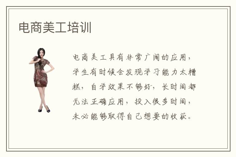 电商美工具有非常广阔的应用,学生有时候会发现学习能力太糟糕,自学效果不够好,长时间都无法正确应用,投入很多时间,未必能够取得自己想要的收获。为了能保证学习收获,学生可以参考电商美工培训,选择某些靠谱的补习机构,完成老师提供的教学课程,看看有没有理想的进步。电商美工培训评价如何,电商美工培训机构的教学资源是非常充足的,同学口碑也很不错,每次报名都会有显著的进步,学习时间较短,不用太浪费日常的时间。为了保障学习的质量,同学在挑选电商美工培训机构时,要看清楚电商美工培训班氛围,有条件的话,可以到当地考察一下,看看那些培训班的基本条件以及教学设施、学习环境等等,如果配套资源不够完善,培训的内容不够全面,都要谨慎选择。