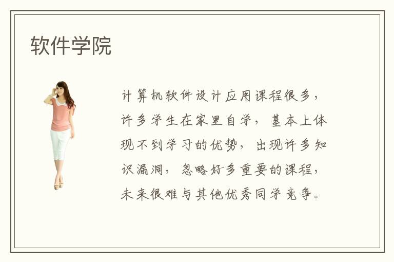 计算机软件设计应用课程很多,许多学生在家里自学,基本上体现不到学习的优势,出现许多知识漏洞,忽略好多重要的课程,未来很难与其他优秀同学竞争。为了更快掌握计算机软件的知识,学生一方面可以自学,了解一些基本的理论知识,也可以通过某些靠谱的软件学院,完成多种应用课程,改善理论和应用的水平。软件学院培训速度比较迅速,而且老师会分层次进行教学,比如早期阶段会从简单的开始,然后让学生逐渐适应,努力提高应用的水准。如果掌握效果比较好,会进行进一步的教学,提高学习难度和强度,使学生的软件应用实力变得更强。软件学院要求严格吗,软件学院的要求比较严格,老师的能力比较突出,要求学生每个阶段都可以端正态度,集中注意力,掌握各种应用技巧。