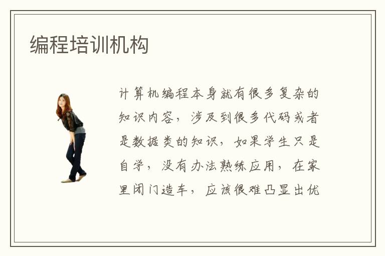计算机编程本身就有很多复杂的知识内容,涉及到很多代码或者是数据类的知识,如果学生只是自学,没有办法熟练应用,在家里闭门造车,应该很难凸显出优势和成绩。为了改善学习成果,努力提高应用的水准,首先要有详细规划,明确学习目标和方向,而且应该一步一个脚印,针对薄弱环节,进行恰当的弥补。要是仍然觉得学习效率低,可以考虑编程培训机构,突破空间更大,改善效果更好。编程培训机构就业难度不会太高,虽然部分学生才刚刚开始接触计算机编程,但老师会将很多细致的工作技能传授给学生,然后及时巩固,毕业后会有很好的提升效果。编程培训机构远程辅导不受空间地域与时间的限制,大家可以在家里学习,效率比较高,课程也非常完善,所以大家可以找到很多重要的内容。