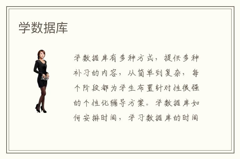 学数据库有多种方式,提供多种补习的内容,从简单到复杂,每个阶段都为学生布置针对性很强的个性化辅导方案。学数据库如何安排时间,学习数据库的时间安排一般是晚上以及周末,或者是选择是碎片时间段,利用好课余的时间,照样可以得到很多收获,让大家的精神状态更好。学数据库压力多吗,数据库学习的压力很小,老师可以突出重点,发挥出不错的考试优势,扫除各种学习过程和应用过程的障碍。另外,有些学生的学习速度有点慢,教学质量不够高,没有明确的复习方向,即便是一些简单的课程,也很难吸收和掌握。而专业老师会不断为学生提供有用的学习方法,每天都会学习比较重要的知识点,所以学生总是可以不断进步,看到自己的学习成果,有效增添学习的信心。