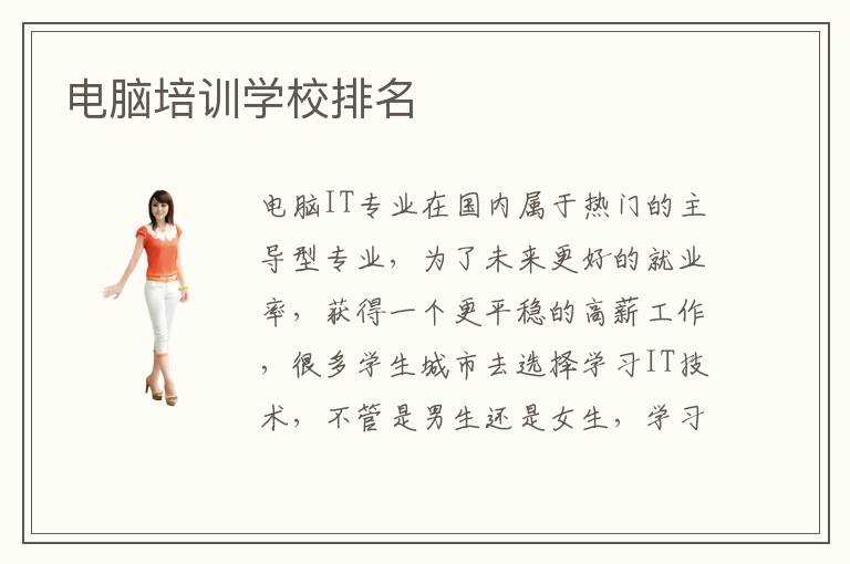电脑IT专业在国内属于热门的主导型专业,为了未来更好的就业率,获得一个更平稳的高薪工作,很多学生城市去选择学习IT技术,不管是男生还是女生,学习IT技术都需要厉稠的逻辑思惟才能,需要脑洞大开的立异才能,以是,选择计算机培训学校排名中靠前的会收成比较高真个学习功效。计算机培训学校口碑在哪里可以查询到哪些是优异的计算机培训中心计算机培训学校排名推荐电脑学校