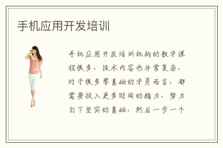 手机应用开发培训机构的教学课程很多,技术内容也非常复杂,对于很多零基础的学员而言,都需要投入更多时间的精力,努力打下坚实的基础,然后一步一个脚印,改善个人的应用水准,独立开发各种手机的应用软件。如果不了解一些重要的课程,学习过程非常吃力,可以选择手机应用开发培训,找到比较靠谱的补习班,往往可以获得非常好的学习成绩。应用开发培训压力多不多,应用开发培训班的培训压力比较小,虽然说周围的同学非常积极主动,往往会产生一些无形的压力,但那些压力可以转化为动力,老师会积极鼓励学生共同交流,分享经验和看法,相互促进,相互提升,因此应用开发培训的水准更高。应用开发培训进度大吗,进度非常大,学生可以看到自己的收获,往往有更强的信心。