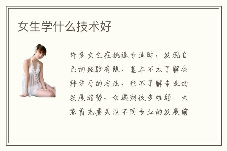 许多女生在挑选专业时,发现自己的经验有限,基本不太了解各种学习的方法,也不了解专业的发展趋势,会遇到很多难题。大家首先要关注不同专业的发展前景以及就业优势、个人的兴趣爱好等等,综合进行考虑,不要随便做决定,以免影响未来发展。女生学什么技术好,一方面要考虑专业的前景,另外一方面也要看看不同培训机构的能力以及教学方法等等,如果培训机构的实力比较糟糕,可能要延长学习的时间,大家要谨慎。技术补习班学习时间可能在一个月到三个月,但事实上学生自己选择的课程不太一样,辅导方式以及时间等等存在一点点差别。为了保障不错的技术教学补习班能力,学生要努力珍惜学习的机会,了解一些重要的学习技巧和方式,争取得到更多学习的资源。