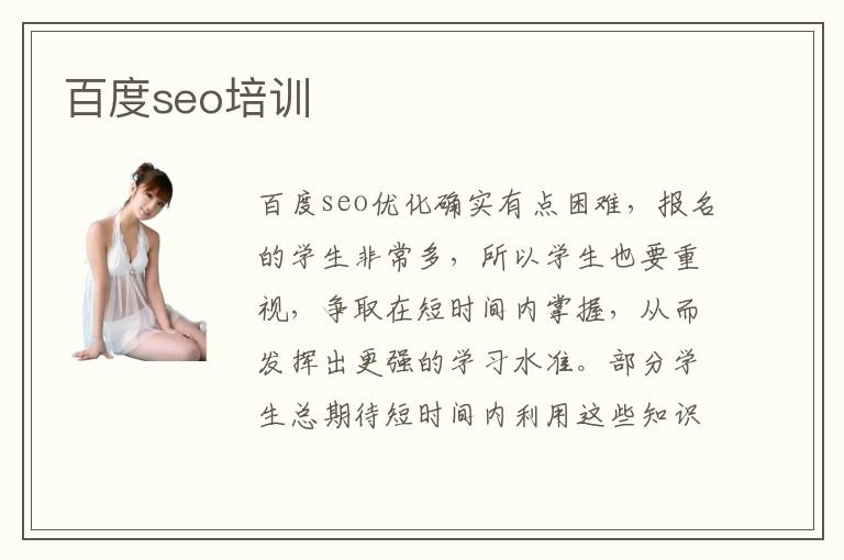 百度seo优化确实有点困难,报名的学生非常多,所以学生也要重视,争取在短时间内掌握,从而发挥出更强的学习水准。部分学生总期待短时间内利用这些知识,凸显出自己的成绩,也要看看百度seo培训课程,分析一下不同培训机构的实习措施,结合自己未知的领域,选择相关的指导方法。百度seo培训多长时间,可能在1个月到4个月,但具体时间不太固定,毕竟大家选择的培训课程以及辅导内容都不同,所以时间会变化。大家选择补习课程的时候,也应该重视专业的培训方法和教学内容,如果这些内容不太符合自己当下的需要,可以适当调整一下方向。百度seo教学辅导可提供多样化的教学内容,帮助学生突破也有的瓶颈,找到更好的工作,不用担心效率低或是学习过程太复杂等等现象。